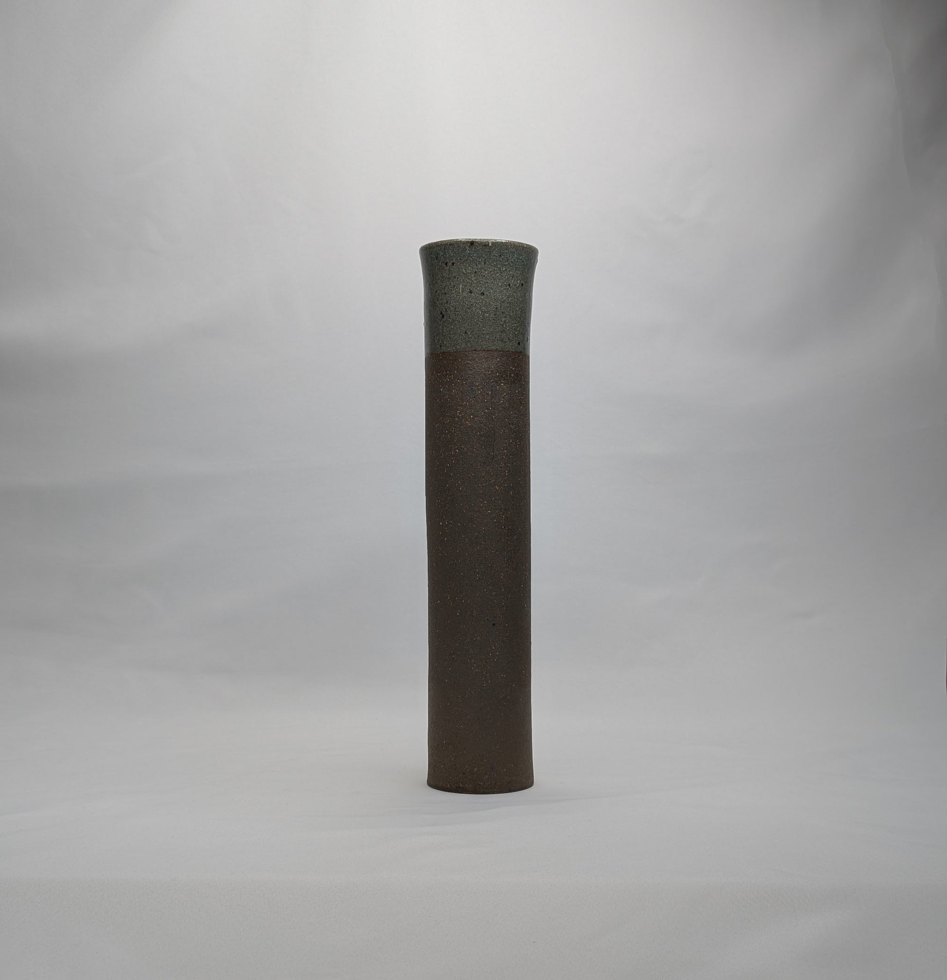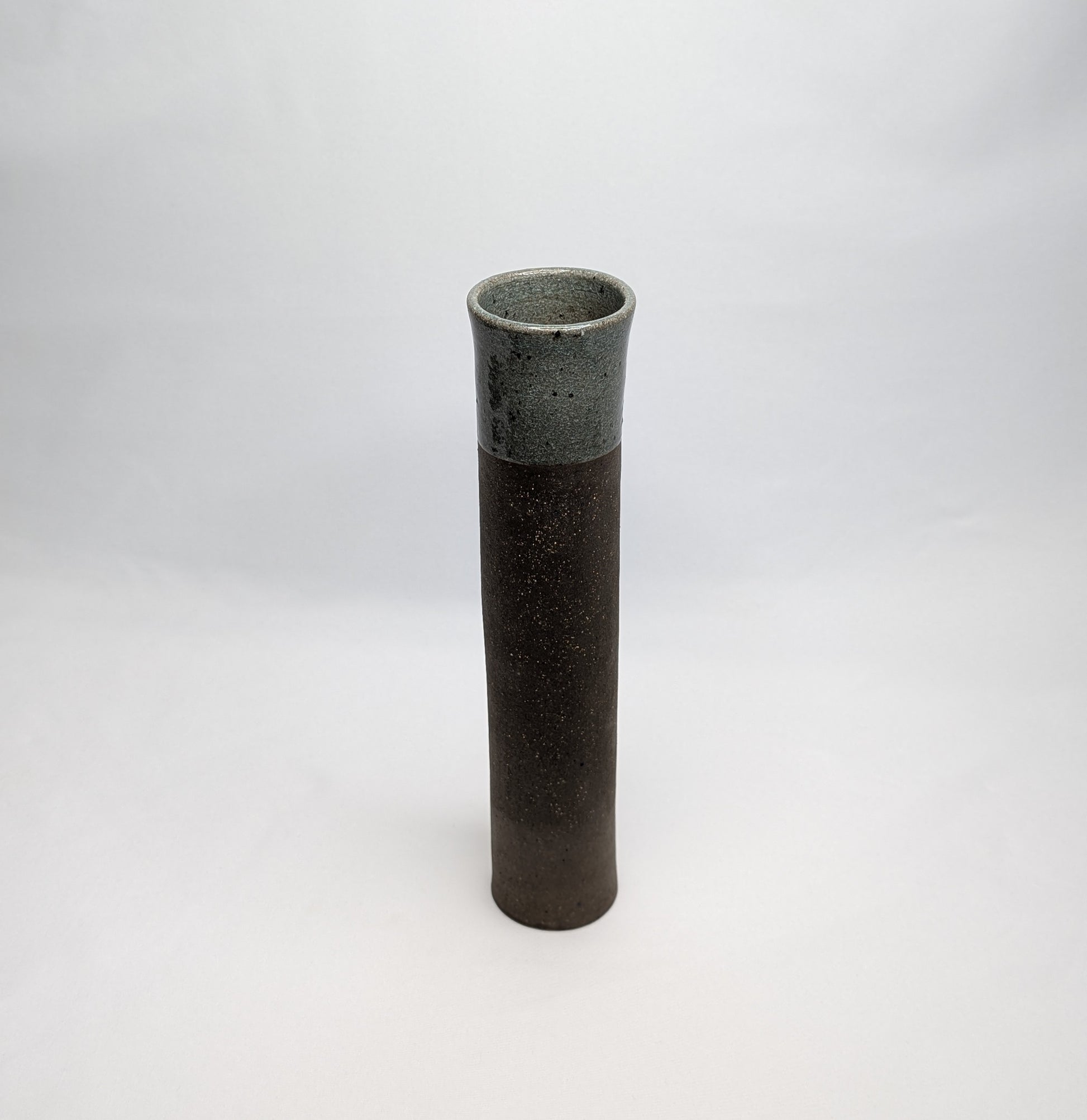 La profondeur de la terre, mêlée aux nuances calmes de l’émail appliqué sur la partie supérieure, lui confère une présence sculpturale évoquant une colonne élégante.