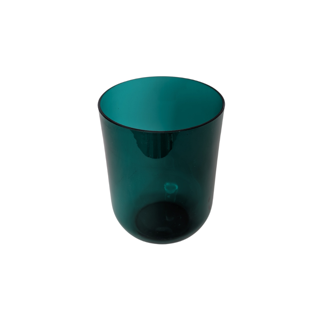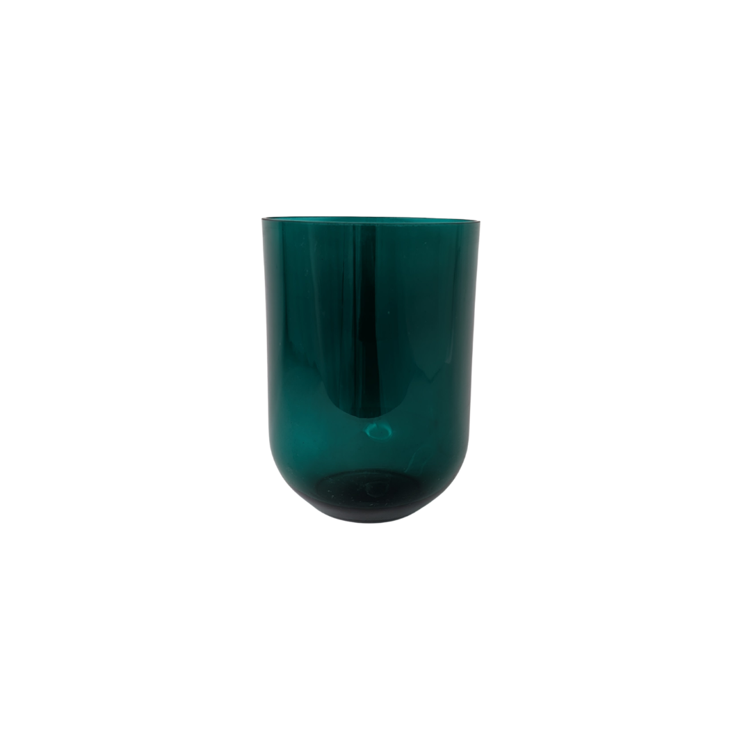 Ce vase en verre se distingue par la profondeur de son vert et sa présence calme.