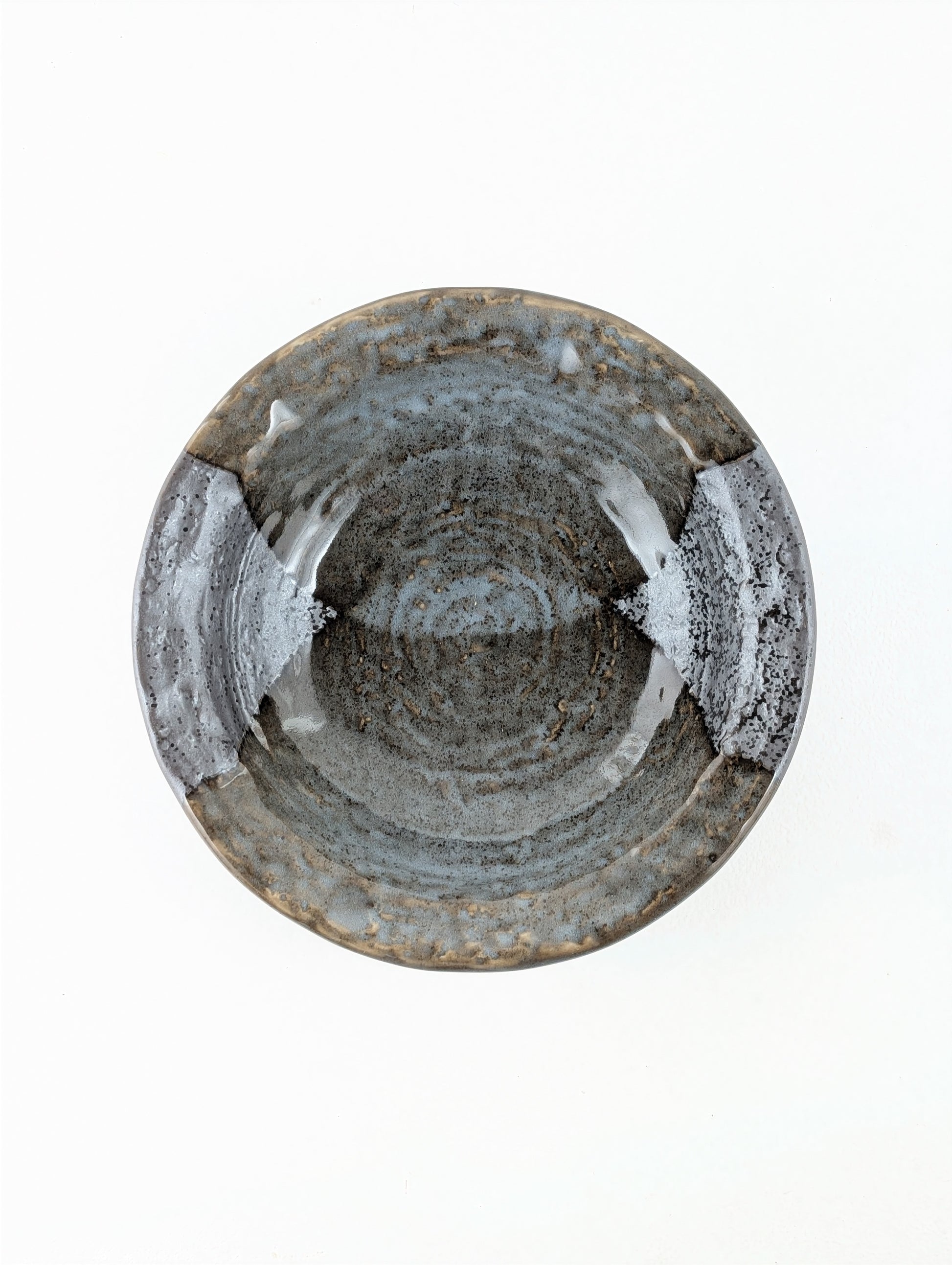 Le dégradé subtil — laissé par l’écoulement naturel de la glaçure — crée un paysage unique qui offre une richesse de textures sous chaque angle.